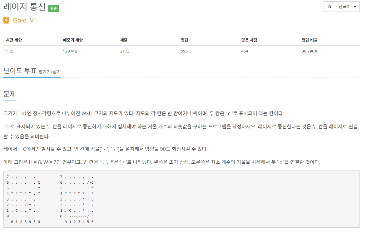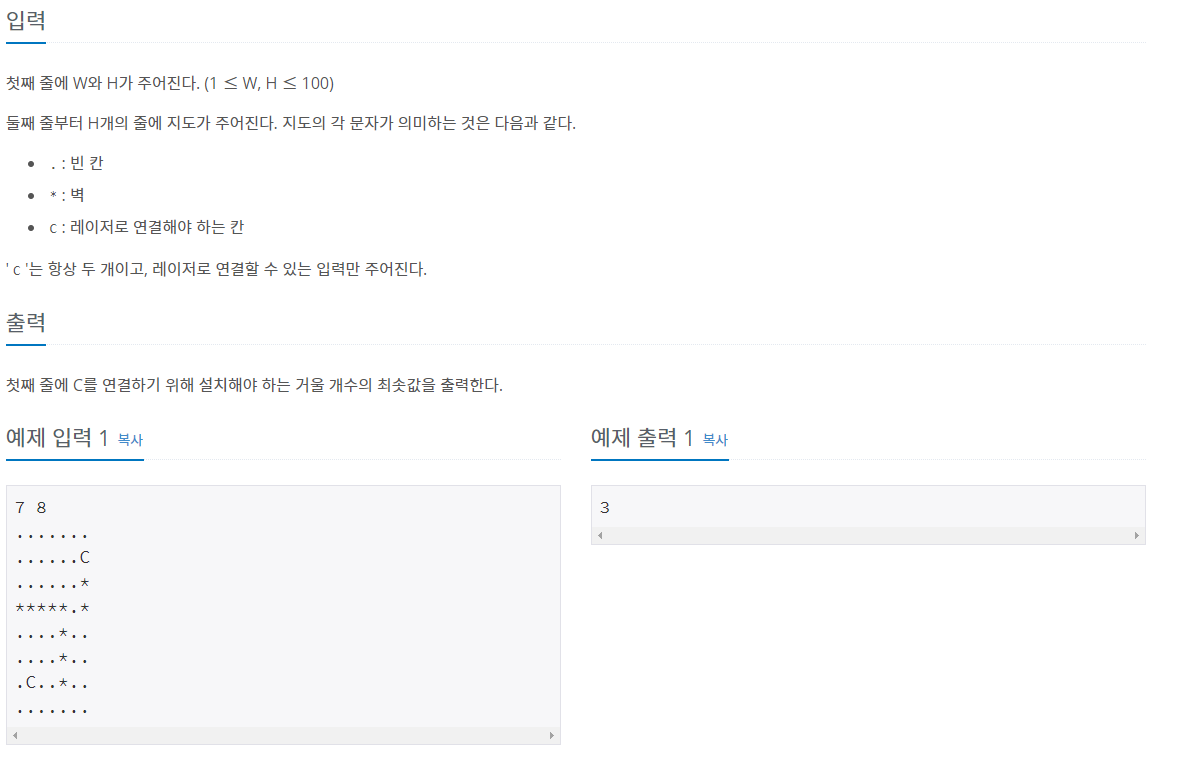 이 때 C -> C까지 갈 때 최소 거울을 찾는 문제다