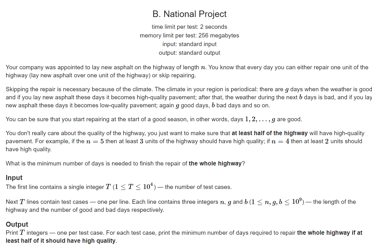 그럼 g*(mid/(g+b))만큼 좋은 날을 볼 수 있고 그 다음 볼수있는 날도 최대 g만큼 좋은날이다