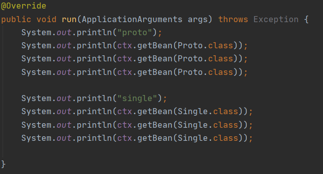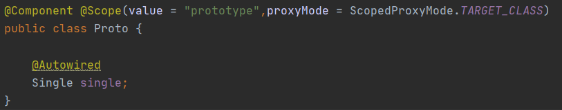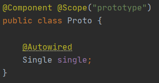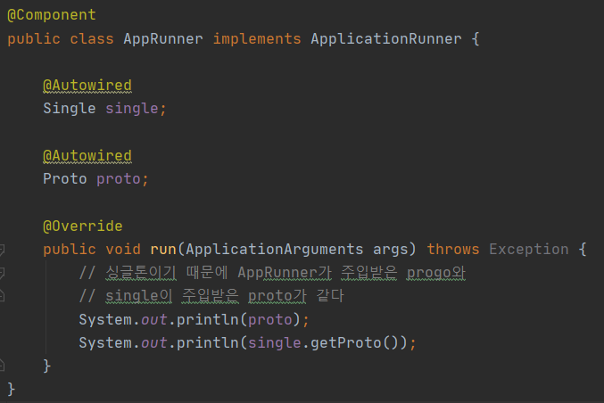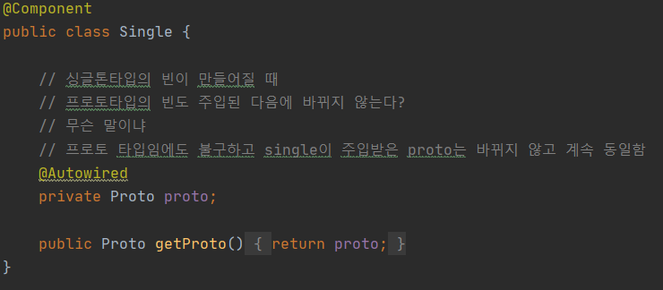 - 위의 그림처럼 싱글톤 타입의 Single이 프로토타입의 Proto를 주입 받았다