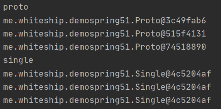 - 이번에는 Proto 에 single을 주입해 프로토 타입과 싱글톤 타입의 차이를 비교해보자!