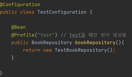 - 먼저 test profile에서만 생성되는 TestBookRepo를 하나 만들었다