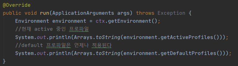 - 위의 실행결과는 아래와 같다! 현재 활성화된 Profile은 없고 default는 언제나 적용된다